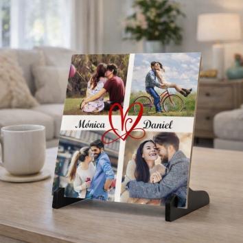 Azulejo de cerámica cuadrado personalizado, San Valentín, cuatro fotos