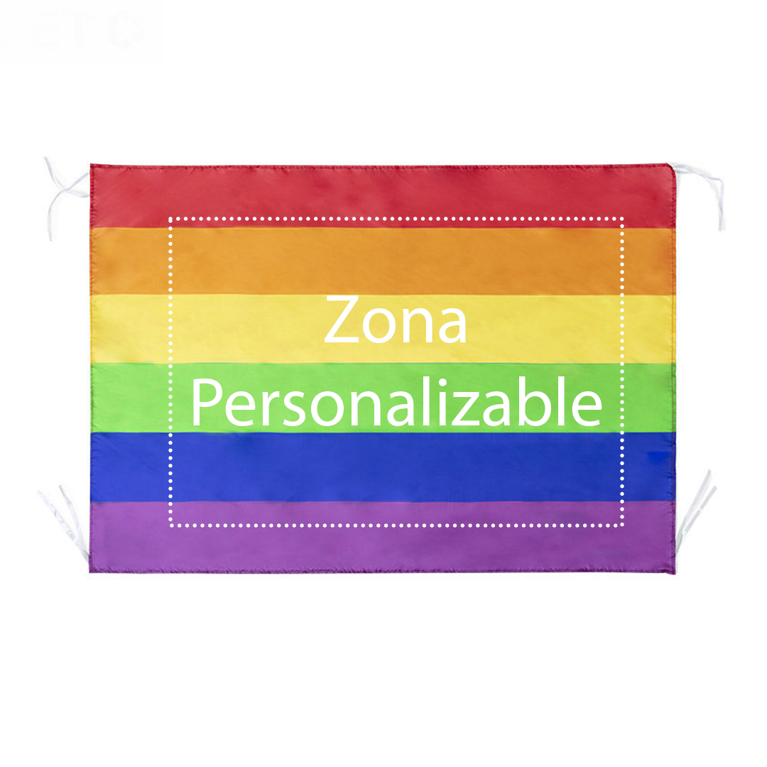 Bandera Rainbow con tela multicolor en resistente poliéster y cintas de sujeción.