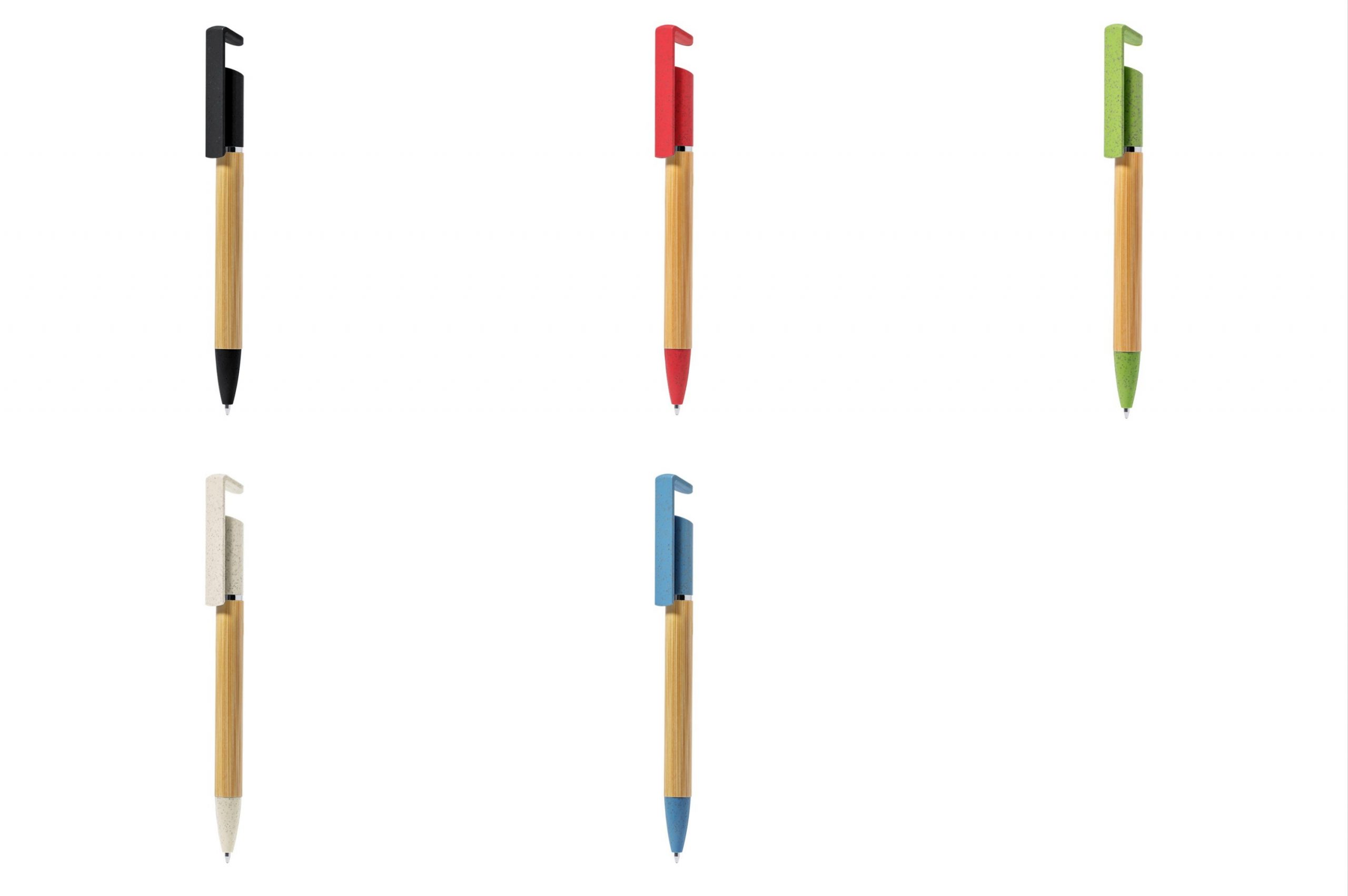 Boligrafo de cuerpo de bambú con soporte para movil varios colores ref:20650