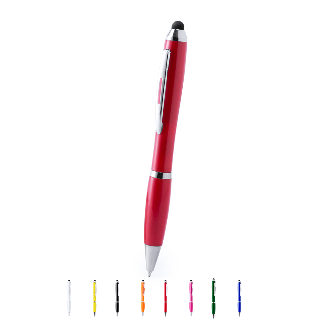 • Bolígrafo puntero de colorido diseño, de apertura giratoria y cuerpo en vivos colores brillantes a juego con la empuñadura.