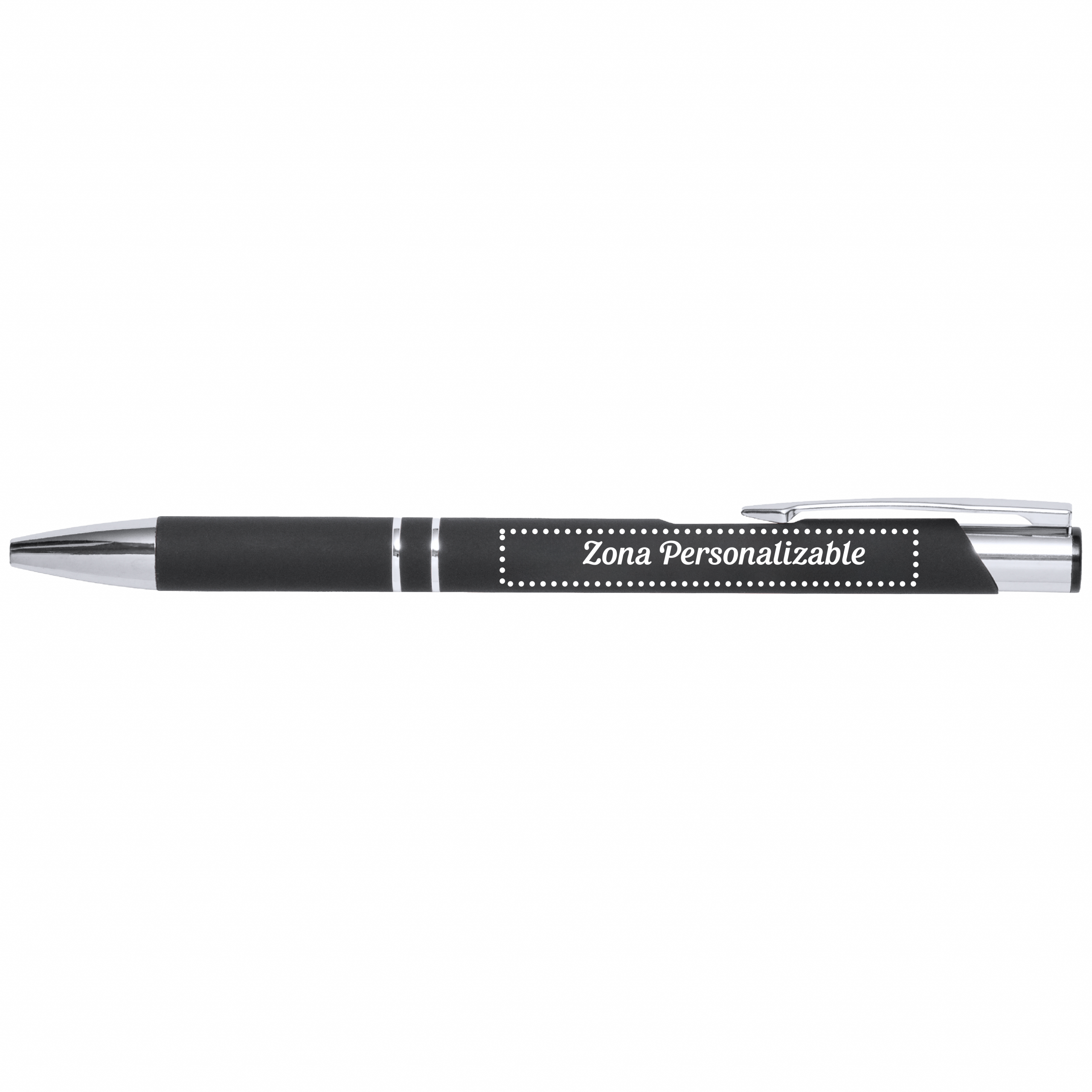 Original bolígrafo de mecanismo pulsador en elegante diseño bicolor. Con cuerpo troquelado de aluminio en tacto goma de acabado mate. Especialmente diseñado para marcaje en láser y mostrar el logotipo en tono plateado. Original clip, anillas y punta en plateado. Disponible en variada gama de colores, con cartucho jumbo y tinta azul.
