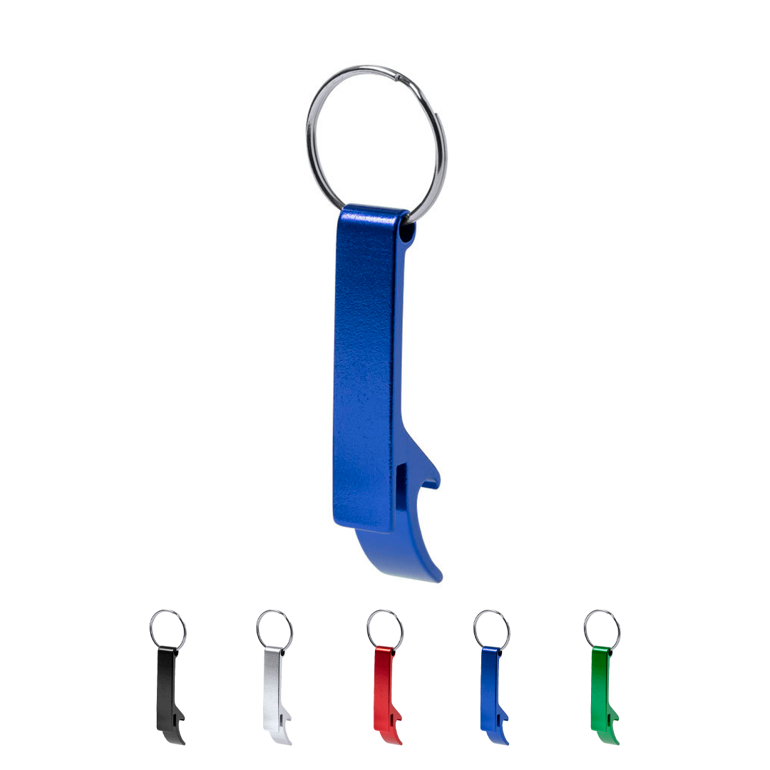 • Llavero abridor con cuerpo de aluminio en variados colores metalizados.