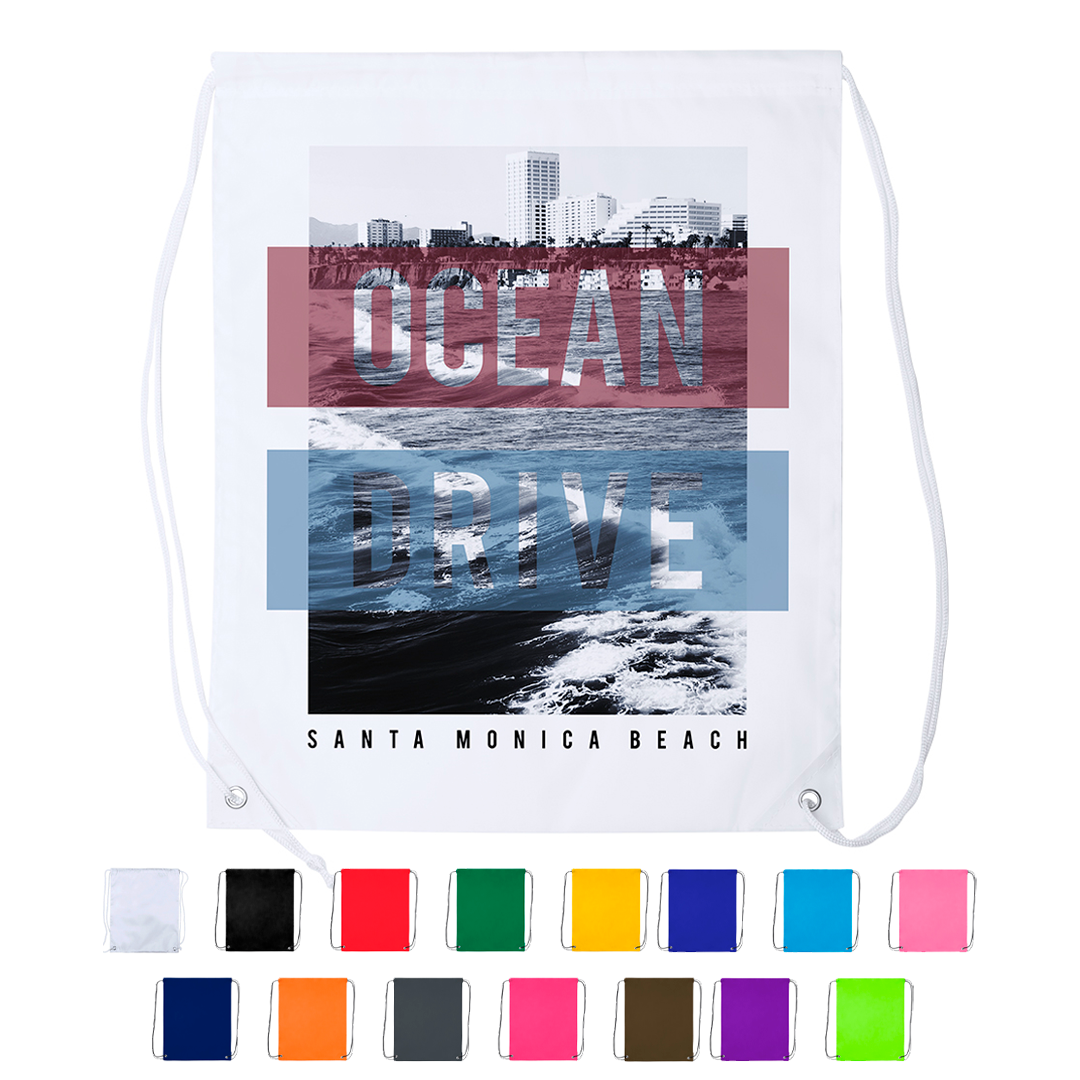• Mochila de cuerdas de suave poliéster en extensa gama de colores.