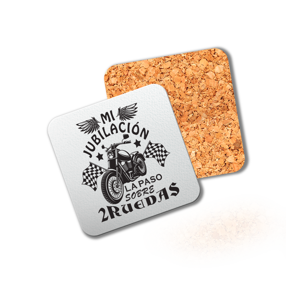 Posavasos de madera cuadrado para jubilación, mi jubilación sombre dos ruedas