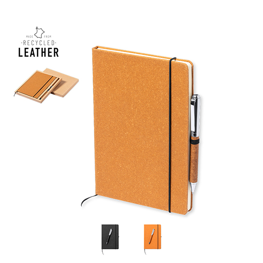 • Set de bloc de notas y bolígrafo en cuero reciclado. Incluye: