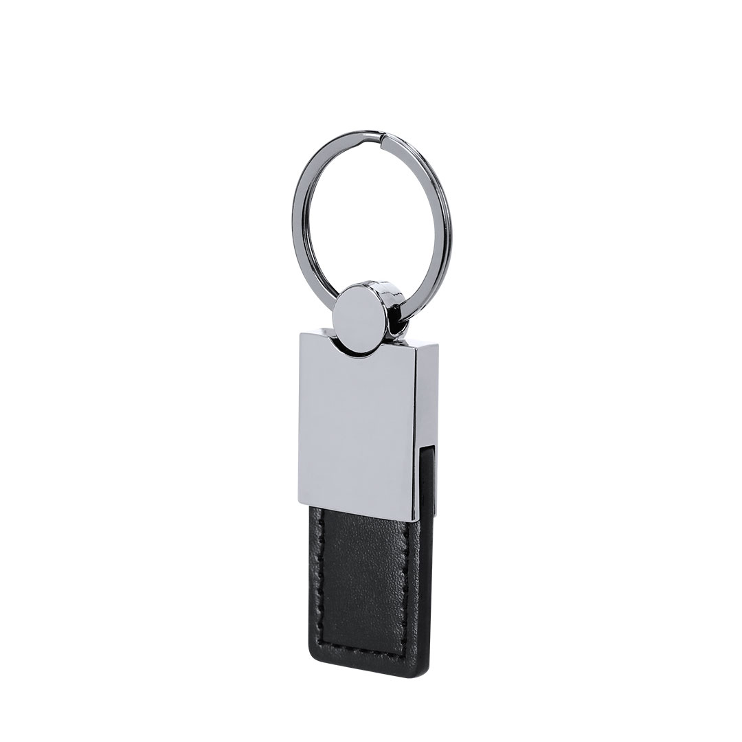 -Elegante llavero con cinta fabricada en poliéster PU y accesorios cromados.
