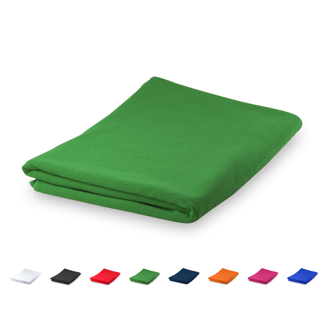 • Toalla de 150x75cm en ultra absorbente y suave microfibra de 345/m2 en variados colores.