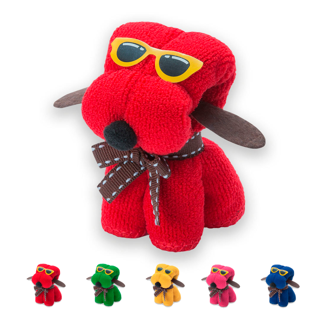- Divertida toalla perro en absorbente y suave microfibra de 310g/m2 en vivos colores. Presentada en estuche de PVC transparente de diseño.